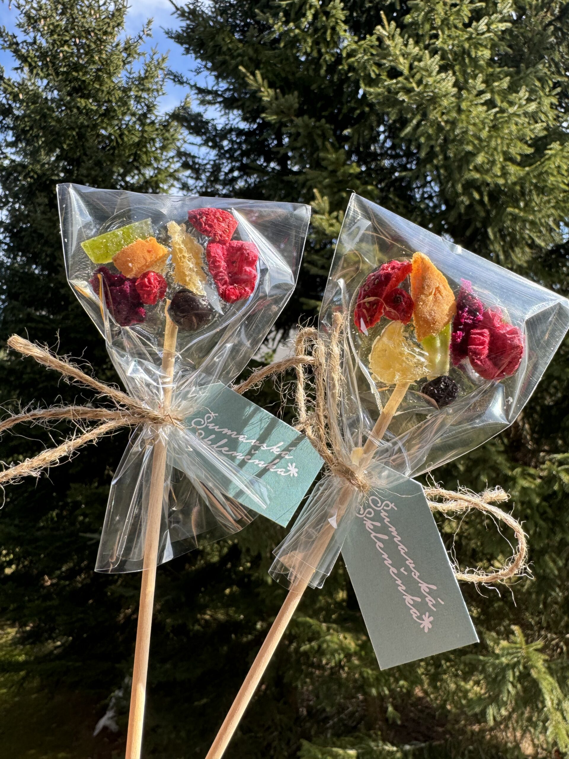 Šumavská Skleněnka je ručně vyráběné lízátko s jedlými kvítky, mrazem sušeným ovocem nebo třeba s vaším logem. Každý kus je originál – jemný, křehký a krásný i na pohled. Šumavská skleněnka není jen sladkost. Stavte se ochutnat na festivalu mini kousek přírody, který udělá radost vám nebo tomu, koho Skleněnou obdarujete.